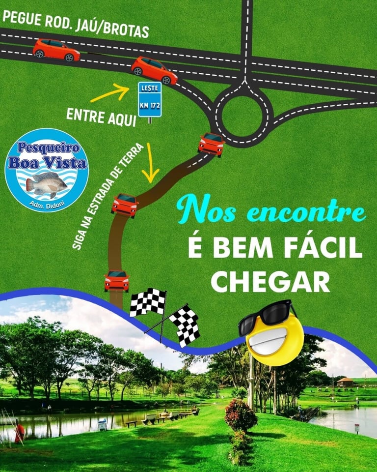 Pegue a Rodovia Jaú/Brotas (Engenheiro Paulo Nilo Romano) mantendo a direita. Ao avistar a placa do Km 172, entre a direita subindo a rampa que da acesso a estrada que liga ao pesqueiro. Chegando ali, falta pouco. Agora é só seguir pela estrada de terra observando as orientações das "plaquinhas" de sinalização do pesqueiro. É bem simples!